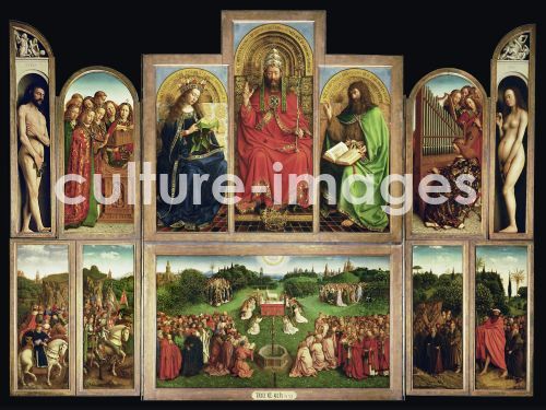 Eyck, Jan van (1390-1441), The Ghent Altarpiece, Oil on wood, 375x520. Early Netherlandish Art, 1432, The Netherlands, Saint Bavo Cathedral, Ghent.