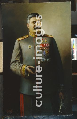 Yakovlev, Vasili Nikolayevich (1893-1953), Joseph Stalin in the uniform of Generalissimus of the Soviet Union, Oil on canvas, Soviet Art, 1945, State Museum- and exhibition Centre ROSIZO, Moscow