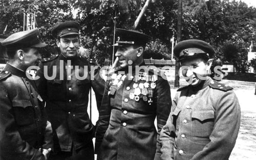 Anonymous, The Kukryniksy group in Berlin, Photograph, 1945, Russian State Film and Photo Archive, Krasnogorsk.