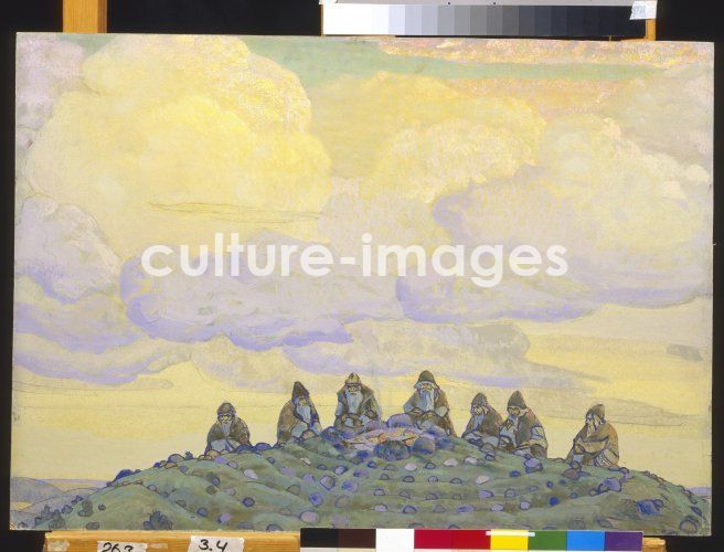 Roerich, Nicholas (1874-1947), The Great Sacrifice. Stage design for the ballet The Rite of Spring (Le Sacre du Printemps) by I. Stravinsky, Tempera on cardboard, Symbolism, 1910. State A. Radishchev Art Museum, Saratov