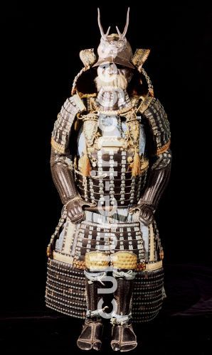 Suit of Japanese armour. Antlers from deer are mounted on the helmet. Mid 16th century