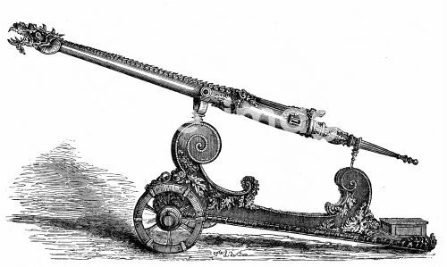 Double-barrelled dragonneau cast in 1503. Engraving of item in Royal Armoury, Madrid