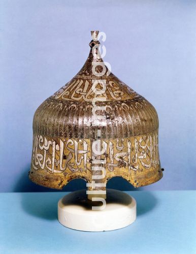 Iron helmet with calligraphic silver damascening decoration. Turkish (Mamluk) 15th century