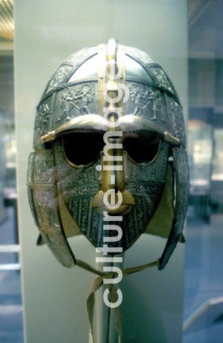 Anglo-Saxon helmet part of the Sutton Hoo treasure excavated near Woodbridge, Suffolk, England, 1939. British Museum