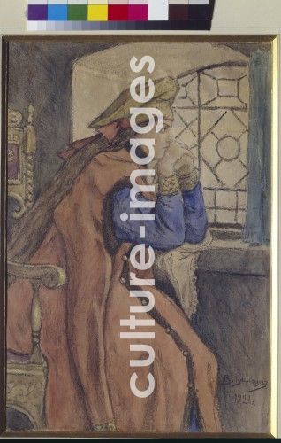 Vasnetsov, Viktor Mikhaylovich (1848-1926), Tsarevna at the window (The Princess Who Never Smiled), Oil on canvas, History painting, 1920. Russia, Regional Art Gallery, Tchelyabinsk, Genre,Mythology, Allegory and Literature,History, Painting,