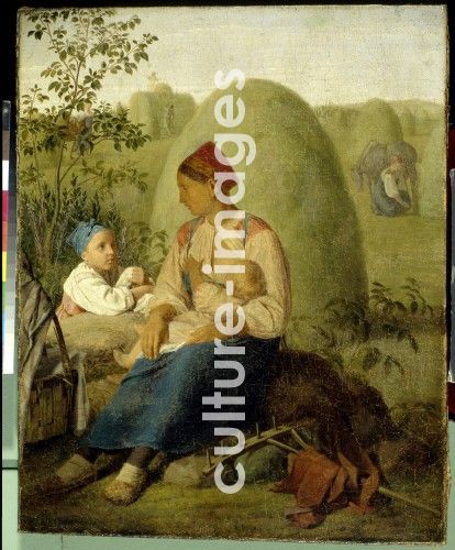Venetsianov, Alexei Gavrilovich (1780-1847), Haymaking, Oil on canvas, Romanticism, before 1827, Russia, State Tretyakov Gallery, Moscow, 66x54, Genre, Painting,