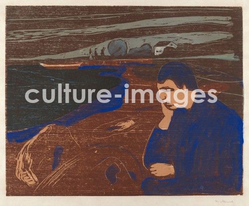 Munch, Edvard (1863-1944), Melancholy III, Woodcut, watercolour, Symbolism, 1901-1902, Norway, © Museum of Modern Art, New York, 37,5x47,2, Genre, Graphic arts, VG-Bild-Kunst Bonn
