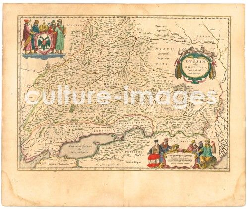 Blaeu, Willem Janszoon (1571-1638), Map of Russia (From: Theatrum Orbis Terrarum...), Copper engraving, watercolour, Cartography, 1645, Holland, Private Collection, History, Graphic arts,