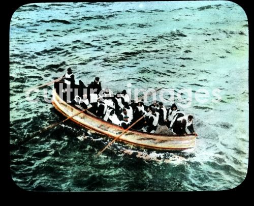 Also this boat has been picked up by the Carpathia, Slide colored, from the series of lectures: The Sinking of the Titanic. Collection Carl Simon 1912.