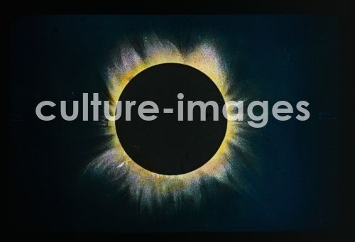 With the eclipse of the sun prominences are visible, Slide colored, from the series of lectures: The Star Universe and its Wonders. Collection Carl Simon 1930.