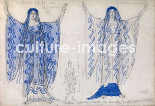 Bakst, Léon (1866-1924), Phaedra. Costume design for the drama Hippolytus by Euripides, Watercolour, Gouache on Paper, 27x40, Theatrical scenic painting, ca 1923, Russia, Private Collection,
