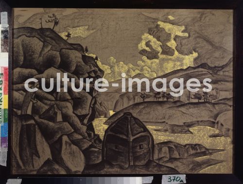 Roerich, Nicholas (1874-1947), Stage design for the theatre play Peer Gynt by H. Ibsen, Pastel on paper, 49x66, Symbolism, 1912. Russia, State Central A. Bakhrushin Theatre Museum, Moscow,