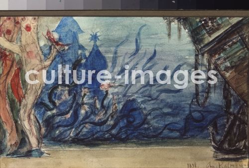 Viktor Michailowitsch Wasnezow, Unterwasserkönigreich. Bühnenbildentwurf zur Oper Die Nixe von A. Dargomyschski