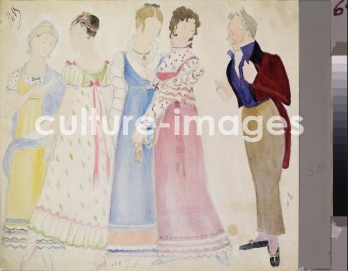 Ulyanov, Nikolai Pavlovich (1875-1949), Costume design for the opera Eugene Onegin by P. Tchaikovsky, Pencil, watercolour on paper, Russia, 1937, Theatrical scenic painting, A. Pushkin Memorial Museum, St. Petersburg. VG-Bild-Kunst Bonn
