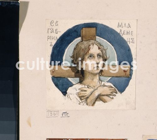 Vasnetsov, Viktor Mikhaylovich (1848-1926), Saint Gavriil of Belostok (Study for frescos in the St Vladimir's Cathedral of Kiev), Watercolour on paper, 12.1x11.8, Russia, 1884-1889. Art Nouveau, State Tretyakov Gallery, Moscow,