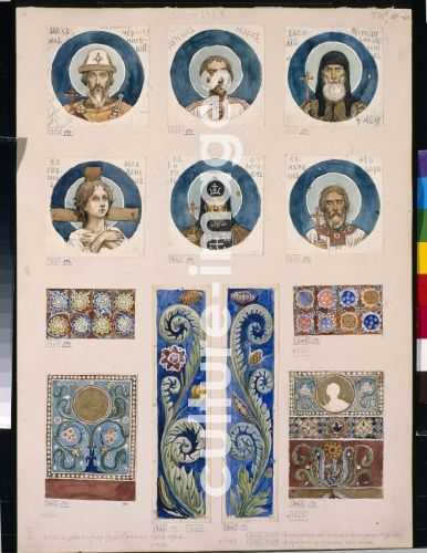 Vasnetsov, Viktor Mikhaylovich (1848-1926), Medallions with Russian Saints (Study for frescos in the St Vladimir's Cathedral of Kiev), Watercolour on paper, Russia, 1884-1889. Art Nouveau, State Tretyakov Gallery, Moscow,