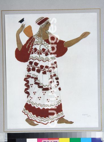 Bakst, Léon (1866-1924), Nymph. Costume design for the ballet The Afternoon of a Faun by C. Debussy, 1912, Colour lithograph, Theatrical scenic painting, Russia, Private Collection,