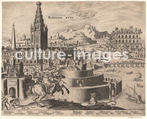 Galle, Philipp (1537-1612), Die Mauern von Babylon (from the series The Eighth Wonders of the World) After Maarten van Heemskerck, Etching, 19,9x26,1, Early Netherlandish Art, 1572, The Netherlands, Museum Boijmans Van Beuningen, Rotterdam.