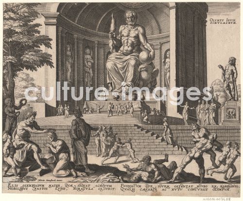Galle, Philipp (1537-1612), The Statue of Jupiter at Olympia (from the series The Eighth Wonders of the World) After Maarten van Heemskerck, Etching, 19,9x26,1, Early Netherlandish Art, 1572, The Netherlands, Museum Boijmans Van Beuningen, Rotterdam.