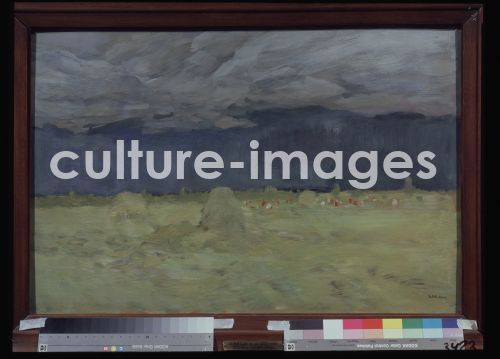 Levitan, Isaak Ilyich (1860-1900), Hay-making, Oil on cardboard, 58,5x89.4, Russian Painting of 19th cen., 1900, Russia, State Tretyakov Gallery, Moscow.