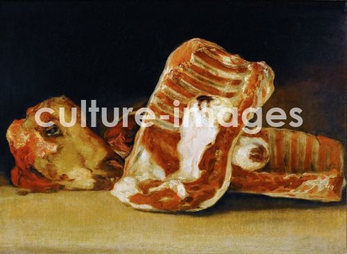 Goya, Francisco, de (1746-1828), Still life of Sheep's Ribs and Head (The Butcher's counter), Oil on canvas, 45x62, Romanticism. Spain, Louvre, Paris.