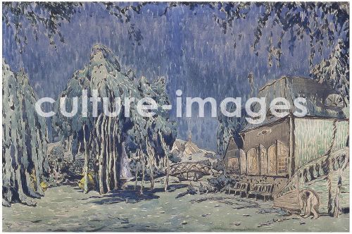 Bakst, Léon (1866-1924), Stage design for the ballet Les Papillons by Robert Schumann, Watercolour, Gouache on Paper, 71,5x105, Theatrical scenic painting. Russia, 1912, Private Collection.
