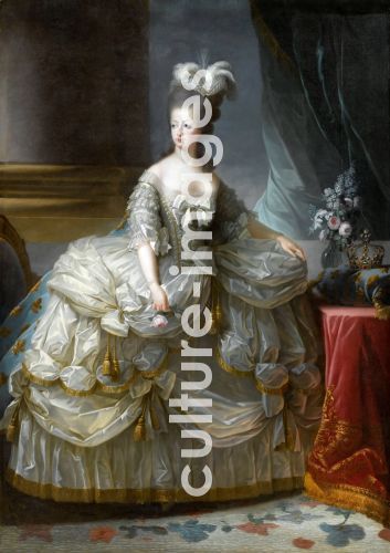 Vigée-Lebrun, Marie Louise Elisabeth (1755-1842), Portrait of Queen Marie Antoinette of France (1755-1793), Oil on canvas, 223x158, Rococo. France, 1779-1788, Musée de l'Histoire de France, Chateau de Versailles.