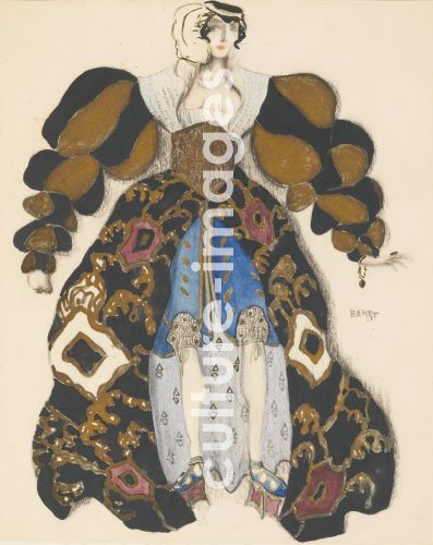 Bakst, Léon (1866-1924), Costume design for the Ballet La Légende de Joseph by R. Strauss, Watercolour, Gouache on Paper, 33x28, Theatrical scenic painting. Russia, 1914, Private Collection.