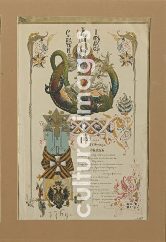 Vasnetsov, Viktor Mikhaylovich (1848-1926), Menu for the Annual Banquet for the Knights of the Order of St. George, November 28, 1899. Chromolithography, Art Nouveau, 1899. Russia, Private Collection.