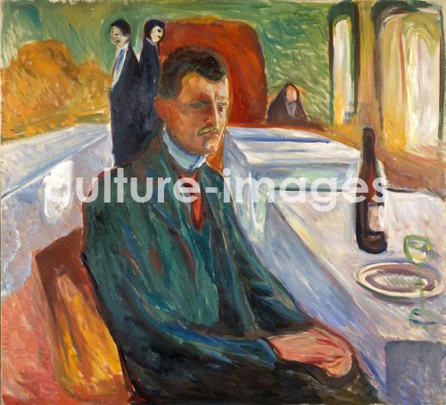 Munch, Edvard (1863-1944), Self-Portrait with a Bottle of Wine, Oil on canvas, 111x120.5, Expressionism, 1906, Norway, Munch Museum, Oslo, Copyright protected.