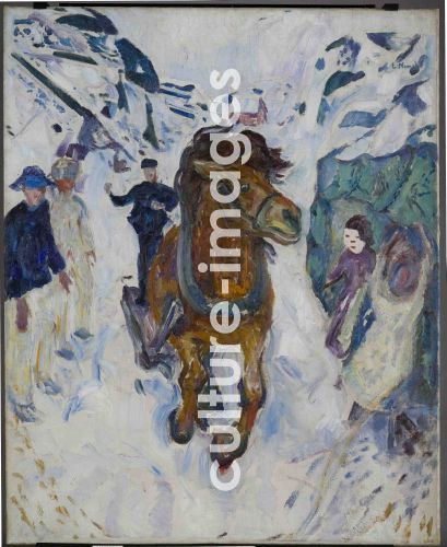 Munch, Edvard (1863-1944), Galloping Horse, Oil on canvas, 148x120. Symbolism, 1910-1912. Norway, Munch Museum, Oslo, Copyright protected.