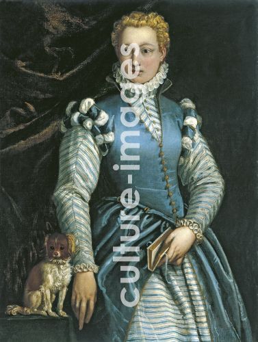 Veronese, Paolo (1528-1588), Portrait of a Woman with a dog, Oil on canvas, 105x79. Renaissance, c. 1565, Italy, Venetian School, Thyssen-Bornemisza Collections.