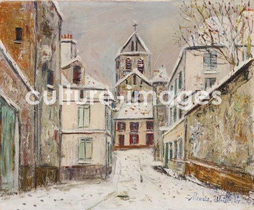 Utrillo, Maurice (1883-1955), Church, rue Montalant under snow at Marizy Sainte-Geneviève (Aisne), Oil on canvas, 38.1x45.7, Postimpressionism, France, Private Collection. Copyright to be cleared, VG Bild und Kunst