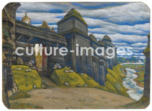 Roerich, Nicholas (1874-1947), Stage design for the opera Prince Igor by A. Borodin, Tempera and pastel on cardboard, 46x62,5, Russia, Theatrical scenic painting, Private Collection.