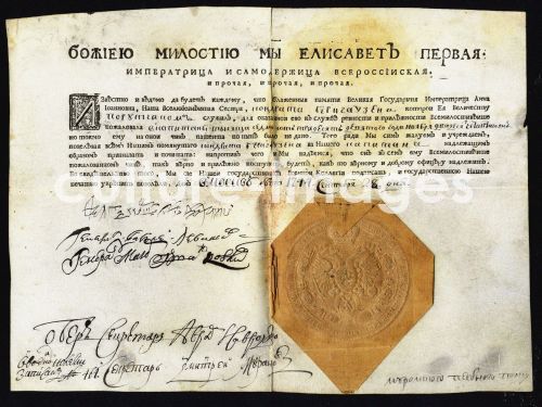 Historical Document, The first decree of Empress Elisabeth (1709-1762) with Seal, Russia, 1744, Private Collection.