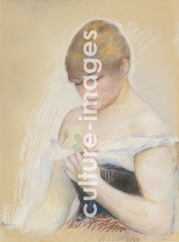 Renoir, Pierre Auguste (1841-1919), Young Woman Holding A Flower. Portrait of the actress Jeanne Samary, Pastel on paper, 61,6x46,3, France, c. 1880, Impressionism, Private Collection.