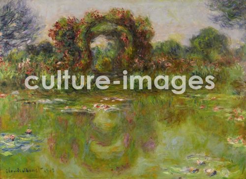 Monet, Claude (1840-1926), Bassin aux Nymphéas, les Rosiers, Oil on canvas, 73x100, France, 1913. Impressionism, Private Collection.