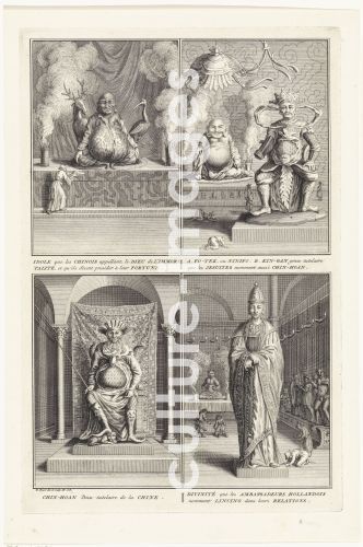 Picart, Bernard (1673–1733), Four Chinese gods, Etching, France, 1728, Baroque, Rijksmuseum, Amsterdam.