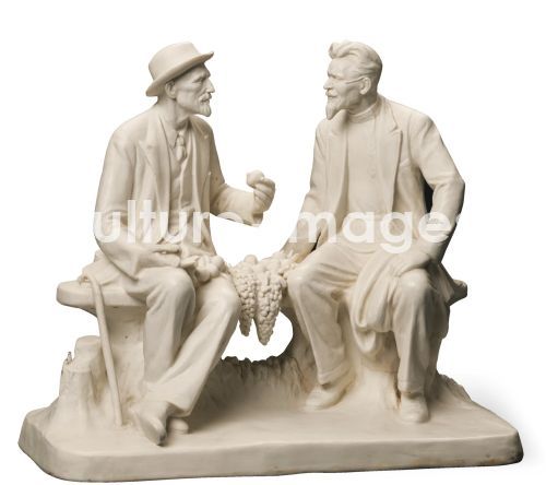 Master of the Leningrad Lomonosov Porcelain Factory, Ivan Michurin In Conversation With Mikhail Kalinin, Porcelain, W 36, 8, Soviet political agitation art, ca 1952, Russia, Private Collection.