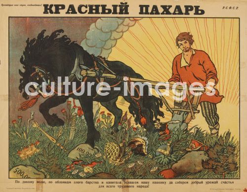 Zvorykin, Boris Vasilievich (1872-after 1935), Red Ploughman, Chromolithography, 52x69. Soviet political agitation art, 1920. Russia, Russian State Library, Moscow.