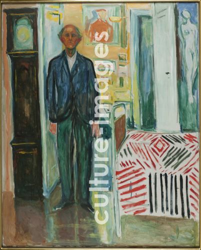Munch, Edvard (1863-1944), Self-Portrait. Between the Clock and the Bed, Oil on canvas, 149. 5x120. Symbolism, 1940-1942, Norway, Munch Museum, Oslo.