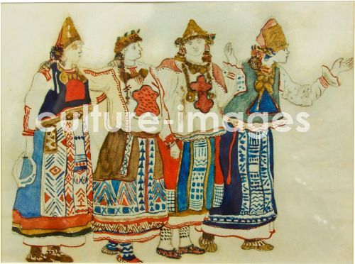 Vasnetsov, Viktor Mikhaylovich (1848-1926), Costume design for the opera Snow Maiden by N. Rimsky-Korsakov, Watercolour on paper, Theatrical scenic painting, 1882, Russia, State Museum of A. Ostrovsky, Shchelykovo.