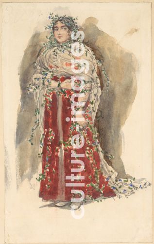Vasnetsov, Viktor Mikhaylovich (1848-1926), Spring. Costume design for the theatre play Snow Maiden by Alexander Ostrovsky, Watercolour on paper, Graphic arts, 1881, Russia, State Museum Abramtsevo Estate, near Moscow.