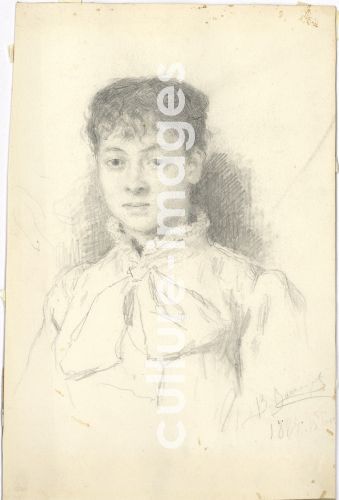 Vasnetsov, Viktor Mikhaylovich (1848-1926), Portrait of the artist Maria Yakunchikova (1870-1902), Pencil on Paper, Graphic arts, 1884, Russia, State Museum Abramtsevo Estate, near Moscow.