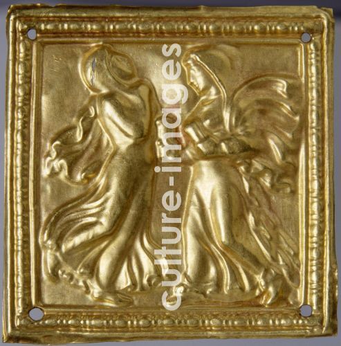 Scythian Art, Square plaque with dancers, Gold, H 4,7, Archaeology, 4th century BC, State Hermitage, St. Petersburg.