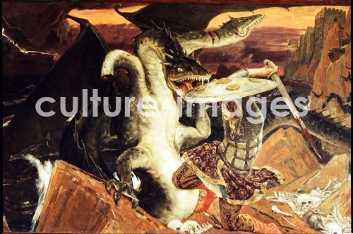 Vasnetsov, Viktor Mikhaylovich (1848-1926), Ivan Tsarevich fought Zmey Gorynych, Oil on canvas, Painting, 1910-1912. Russia, State Tretyakov Gallery, Moscow.