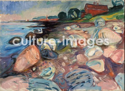 Munch, Edvard (1863-1944), Shore with Red House, Oil on canvas, 69x109. Symbolism, 1904, Norway, Munch Museum, Oslo.