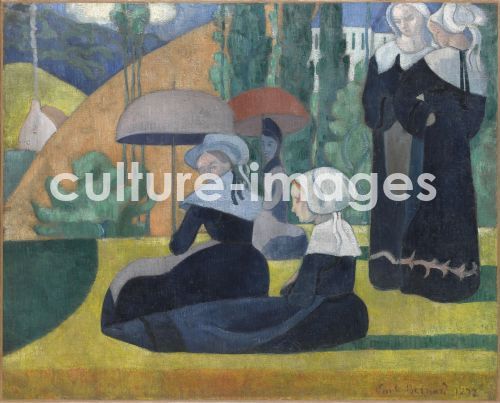Bernard, Émile (1868-1941), Breton Women with Umbrellas, Oil on canvas, 85x105, Postimpressionism, 1892, France, Musée d'Orsay, Paris.