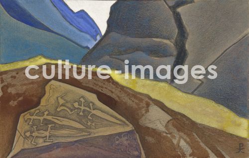Roerich, Nicholas (1874-1947), Three Swords, Pencil, watercolour and gouache on paper, 16x25, Symbolism, 1933, Russia, State Oriental Art Museum, Moscow.