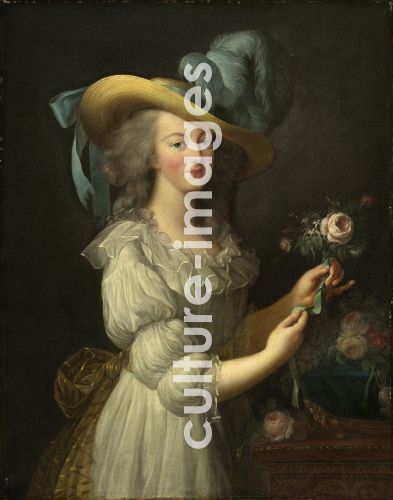 Vigée-Lebrun, Marie Louise Elisabeth (1755-1842), Portrait of Queen Marie Antoinette of France (1755-1793), Oil on canvas, 92,7x73,1, Rococo, after 1783, France, Private Collection.